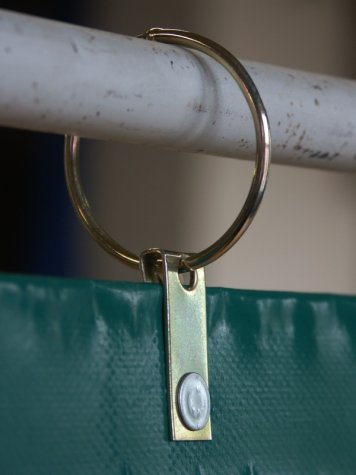 Na horní straně opatříme kroužky po 50cm pro připnutí přes karabiny na jezdce do závěsného systému.